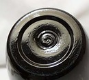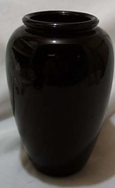 Purple Amethyst Glass Large vase with HP flowers. A pink & yellow flower painted on this glass vase. Aprox 8 1/2 x 6" at tallest points, it is in mint condition. The flowers have some paint missing see photos. It is a older vase, probably the 1930 era & looks black except when held to light. Very pretty.