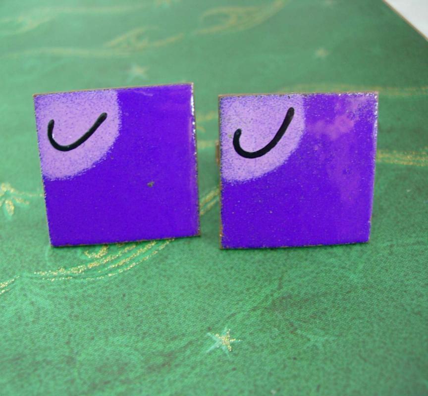 These extra large square purple and lavender enamel come with a black enamel j in the lower corner. They are crafted from copper and the posts have been resoldered. Still a great vibrant cuff accessory for a man or woman. This is the Time to be thinking of the upcoming holidays and what better way then that something for the men that have everything! This would be a great idea because it is Vintage and not something you can buy everyday. OR perhaps just a perfect addition to a collection. Boxed for gift giving; gift wrapped on request. ∆ Maker: unknown ∆ Material: copper,enamel ∆ Size: see photo ∆ Weight: light/medium ∆ Condition: In good vintage pre-owned condition, as is, in lieu of post resoldered. ∆ Lovely patina! These are part of a MASSIVE estate collection of cufflinks and jewelry so be sure to check out our other items here: https://www.etsy.com/shop/NeatstuffAntiques?section_id=all We don’t polish these previously owned well loved pieces so we can keep the original patina. We try and photograph all of the pieces next to a ruler so you can see the actual size. All jewelry sold as found. NOTE TO BUYER: We Do not offer engraving services of any sorts as we are not equipped to do so I’m sure your local jeweler would be happy to do so, sorry for any inconvenience thank you. All cufflinks ( unless otherwise specified) are considered costume jewelry. We use the descriptions of any stones from the manufacturers titles when they were first produced. When we refer to the stones as moonstone or jade or garnet, for example, we are using how the original manufacturer of the pieces used them. We cannot guarantee the authenticity of a stone in a costume piece of jewelry. ***ATTENTION!*** Shipping rates for domestic and international delivery have skyrocketed! I have adjusted the shipping rates accordingly. If you wish to have another method of delivery (i.e. First Class International) PLEASE convo me before placing your order. My goal is to save both of us money on shipping. Nov 28, 2014