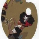 R & J Gilchrist Dry Goods Girl Birds Victorian Die Cut Artist Palette Trade Card