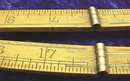 This is a clean 2 foot 4 fold boxwood ruler with the quality arch joint feature. It's marked "WARRENTED BOXWOOD RABONE MADE IN ENGLAND NO. 1377". It's in good+ condition with little wear noted, 2 of the 3 brass alignment pins are in place, very little warping, even with the one pin missing, nice marking, no cracks, nice brass trimmings. A well preserved, quality made rule!