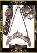 This RARE 1860s solid sterling Gorham double purse frame and florette chain is adorned with TWO serpents to hold the chain, four large griffins or winged dragon like creatures which each hold a long horn full of flowers and roses. I have never seen another like this ( and Gorham frames are VERY VERY hard to come by. Truly a specially commissioned piece that was for someone very high in society. Although Gorham is probably more well known for their flatware and serving pieces, they also produced incredibly rich and fabulous silver smalls, as well as purses and purse frames .Other than Tiffany, Gorham was THE best in silver and this one tops them all. Surely a museum piece, this has its original thick solid sterling florette chain with hand soldered thick link. Notice the loop on the front of the purse that flips up and down to hold a chatelaine. The closure works well and the it has a fancy button push in clasp. This is not small by any means and would have probably had a black fine French silk bottom. The measurements are 6 ¾ from outer hinge to outer hinge. 4 from the top of the button clap to the lowest point on the frame. Almost ½ wide and with a chain that is 17 long and 1/3 wide, this is an IMPRESSIVE PIECE! Notice the raised relief on the lip of the top of the frame. ( I have more photos if you want to email me for them) No place on this was left untouched. Even better than the photos this HIGH QUALITY antique purse is a MUST for handbag collectors as well as Gorham sterling collectors. Inside the marks are an lion, an anchor and a G. Using the Gorham hallmark index, this dates 1863-1890. IT hardly needs any polishing and since it is quite a wonderful mythological piece of art as well as a FANTASTIC purse frame, this is one of kind that needs to be in a home where it will really be treasured! This one will require insurance when shipped in the US.