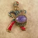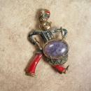 This old large ( 3" ) gilt pot metal jelly belly that came out of the estate of a trifari collector that had nothing but coro and trifari pieces. I have two of these in different colors. He has the lucite center and all the qualities of other Trifari jelly belly pieces I have. At first I thought he was a monkey but now I am not so sure. I guarantee this is not a reproduction. His pin works fine.Ask about our ten percent off special before you buy, it could save you a lot of money.