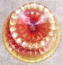 Red and Yellow Glass Footed Comport with Diamond Design