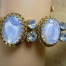 Gorgeous Czech Glass Bracelet Blue Givre Glass & Rhinestones Vintage brass filigree