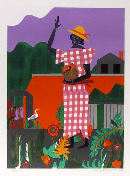 Romare Bearden, Girl in the Garden, Lithograph