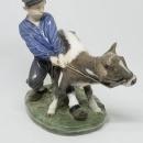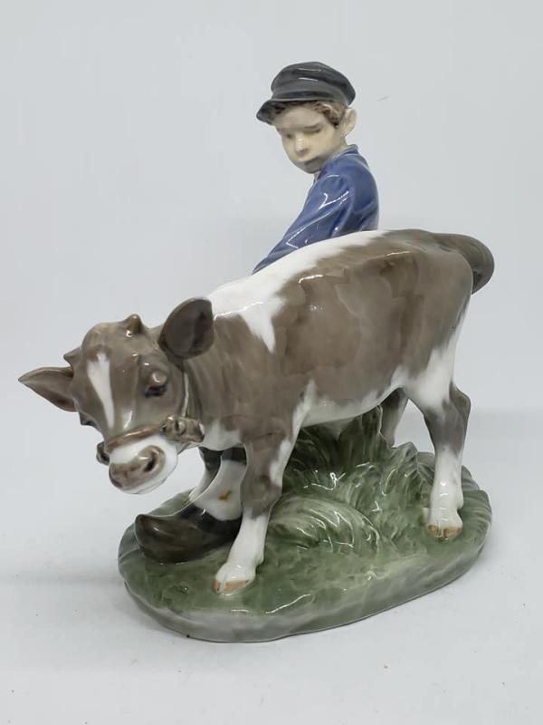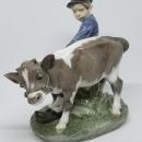 Royal Copenhagen Boy Walking in Field With Calf #772