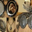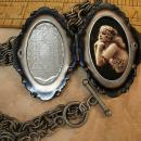 Sacred Dove Deco Locket NEcklace Saint d'Esprit Espirit dove Gunmetal chain Flapper portrait
