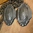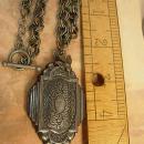 What a great gunmetal locket and necklace with an antique Holy Dove ( also called a Saint d'Esprit) charm that protects you with its strong faith accompanied with it. The double sided aged locket has a lot of beautiful deco detailing and when you open it, there is a photo of a beautiful young deco beauty! The locket is quite large ( 2 1/2" long) and it hangs from a double link watch chain with toggle clasp that measures 18" long. The back of the antique Holy dove reads "Come Holy Spirit Enligthen Me". This makes a great gothic piece with this rich gunmetal that is a very dark and beautiful assemblage piece. VintageSparkles offers Layaway on all our Etsy pieces regardless of which site it comes from.All layaway payments will need to be in the form of a check or money order only. Please remember that vintage & antique items are not mint, nor are they perfect but they sure are full of old history and charm. Please use photos to make your decisions and read our policies prior to buying so you can have an excellent experience with us. Please use this number when ordering ga44939. If you want to see more of these pretties this is the link to my etsy store. http://www.vintagesparkles.etsy.com/
