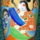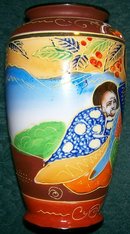 Vintage Satsuma-style Vase Immortals/Holy Figures Japan 1930s 6"H