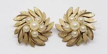 These vintage SCHREINER NEW YORK clip earrings have a round baby blue thermoset cabochon and light b...