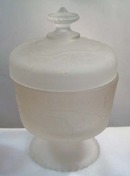 Indiana Glass satin grape trail lidded jar. Pretty frosted finish on this Glass jar & lid. It ha...