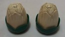 Jay Don plastic eggplant shakers, Green base & white top, these are petal like shakers that rese...
