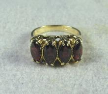 Very heavy gold ring weighs 10.81 gram. Marked 14k. Channel set stones between rich bands of gold. S...