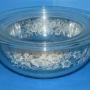 Set of 3 Clear Pyrex Nested Mixing Bowls with White Daisy Pattern Colonial Mist # 322 323 325 1970’s.