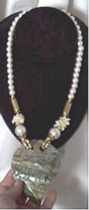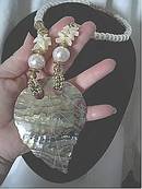 Set(s)/Simulated Pearl Necklace W/Abalone Shell Leaf Pendent
