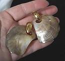 Simply bold and lovely! This could be a souvenir piece or it could just be a piece made when this material was in style, like the 1970's. I really have no way of knowing. It is really quite pretty. The large leaf is carved from either abalone or concha shell. It has tumble polished nuggets of mother of pearl. I have one earring that does match the necklace. But alas, it is missing it's mate. But, I had these lovely carved mother of pearl pierced ars that look just fine with it. The necklace is approx. 23". The leaf is approx. 4"X3". The shipping fees quoted are for first class/No insurance in USA.