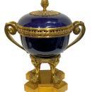 Sevres Style Cobalt Blue Porcelain and Bronze Cassolette or Potpourri