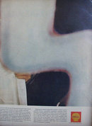 Shell Sign On Shirt 1964 Ad. This two page color May 22, 1964 ad states Since When has Shell been in the Shirt Business. Laundryman Lee has never seen our Shell sign in a shirt before. Weve put it there this once as a symbol of Shell Chemicals that have been helping for a long time to make shirt fabrics more wearable, washable and Presentable. Picture shows Laundry Man lee holding Shirt with Shell Sign on it. Magazine tear sheet picture is taken through plastic and may show wrinkles or crookedness that is not in the ad. This original magazine tear sheet measures 10 1/4 inches wide by 13 3/4 inches tall.