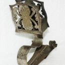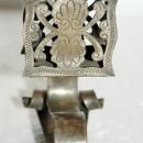 Unusual Unique Match Box Holder Clip Silver Plated . Never seen one like this before. As you can see it is an ornate open work holder of what I presume is for match boxes that is mounted on a bent metal curl that branches out with curlicues at the terminus. On the underside there is a non hinged slider clip that is similar to a money clip. It is unsigned/ unmarked and assumed to be silverplated. It is a total of 3.25" tall x 1.75" wide and 2.5" deep. I bought at a fleamarket in Belgium. Other than being dark with aged patina the condition is excellent.