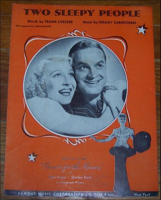 Two Sleepy People From the Paramount Picture Thanks For the Memory starring Bob Hope and Shirley Ross. Words by Frank Loesser and Music by Hoagy Carmichael. Sheet music is in good condition, wear at edges. Famous Music Corp. New York 1938