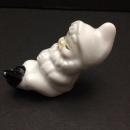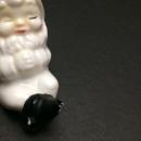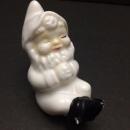 Adorable tiny sleeping pix or Santa's elf figure. It is 2.5" ltall and 2" wide It is wearing all white with the expectoin of the black boots. Has a white beard and sweet face. There is some paint ruibbed off the tip of his black boot . Otherwise the condition is excellent.
