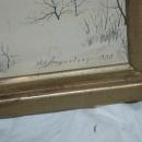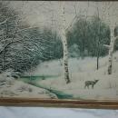 Snowy Birch Forest with Fawn Painting by AA Augusts 07-1930 / Or it could be (Augustso )Framed behind glass Lithographic Print . It is in a well worn wood frame that looks like the gilt has all worn off. The frame is 17.25" x 13.25" There is just a speck of moister or water damage at the bottom near the signature and along the very bottom edge. The print as somewhat muted tones.
