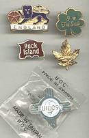 Here is a collection of souvenir place pins. They are from England, Ireland, Canada, Rock Island and Ruidoso,New Mexico. They are all enameled except the little Canada leaf. The leaf has some green on the back. The Ruidoso pin is still in it's original sealed bag. The shipping fees quoted are for first class/No insurance in USA.