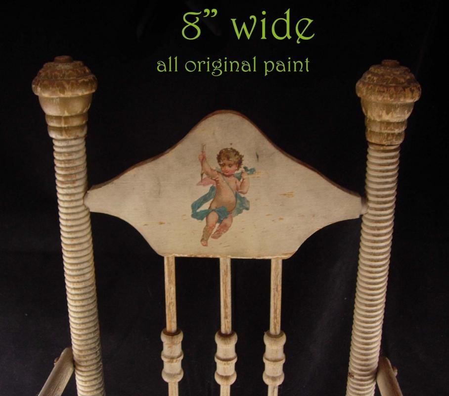 Spooky Antique Doll 28" High Chair - Haunted furniture - Victorian cherub - Vintage honey comb finials