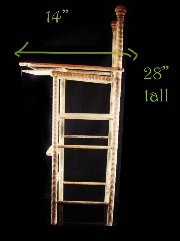 THis high chair looks like it came right out the Addams Family house. ...It is 28" tall and 8" wide. I love the old patina which is why I never restored it. Hope it gets a great home. Will ship in the US only.