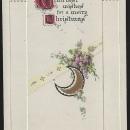Christmas Postcard. Purple Flowers and Gold Moon. With Best Wishes for a Merry Christmas. Back is Postmarked. Postcard is in good condition, wear at edges