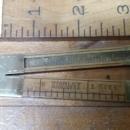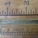 This is a nice clean 6 inch long single fold boxwood caliper ruler marked "STANLEY NO. 36 MADE IN U.S.A.". It's in very good condition with a little darkening on the boxwood, some minor tarnishing on the brass. There is a only minor wear overall, good smooth operating caliper slide, good brass locator/alignment pin in place. A clean nice looking rule overall!