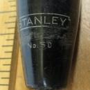 This is a nice sharp 1/4" chisel marked "STANLEY NO. 50 MADE IN U.S.A.". Although this chisel doesn't have the famous EVERLASTING CHISEL name on it, it is called a EVERLASTING CHISEL by Stanley, it does have a very heavy duty feel in hand, and quality of workmanship, just doesn't have the wooden handle. Made to last a life time! It has the same quality steel as the early No. 60 everlasting chisels, and also has the solid, study, metal end cap. As you can see the wood handle was replaced by a plastic like material called "PERMALOID" and Stanley offered it in a few different colors, in the case of this handle it is black. This chisel is 8.0" long overall. It is in good++ condition, ready to use condition with very little wear on the metal area, some wear and scratches on the handle, no rust, no damage, good metal end cap, clean! A top quality chisel by a well known maker!