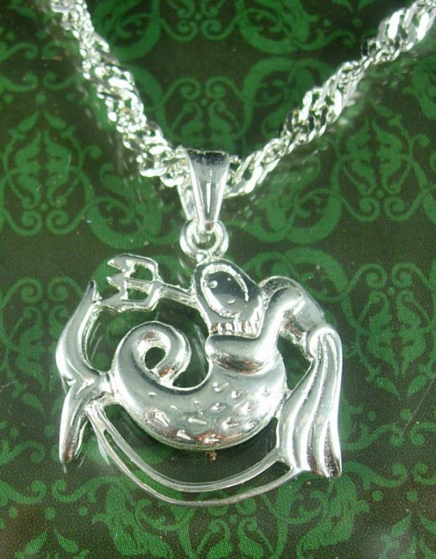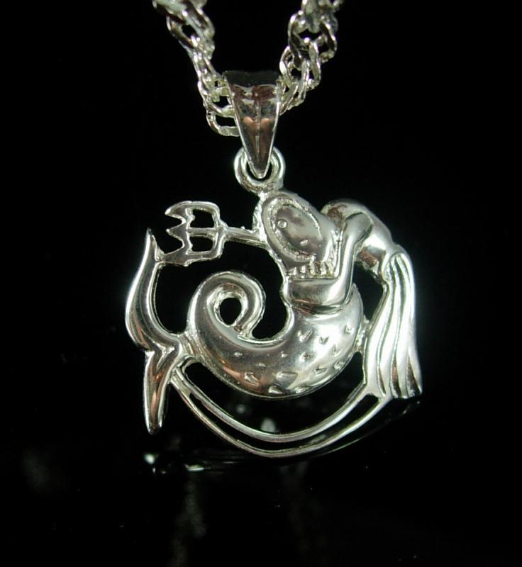 Sterling mermaid Pendant sea goddess Nautical Necklace Mythology Aquarius ConsTellation January February Birthday gift Trident