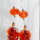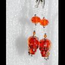 These original one of a kind hand crafted Swarovski skull earrings in the firery “Red Magma” color that sparkle and seem to change with the light. The orange red crystal Briolette Beads that are above the skulls have an AB sparkle and work perfectly in this unique design. The rest of work is done with a combination solid sterling silver beads, pumpkin colored AB and crystal clear seed beads. The ensembles dangle from specialized sterling silver leaver back earrings. The total length is 2 3/8 inches and the skull are about 13mm. The condition is excellent.