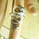 Sterling snake ring with a silver serpent that crawls down your finger black rhinestone eyes size 5 1/2