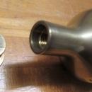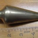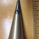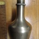 This is a nice clean 18 ounce surveyor's plumb bob with an unusually medium long neck (1 .20" long straight section at top including the threaded cap). The steel tip and cap are both threaded and the threads are in good shape. The only marking on this tool is "18" on the side of the plumb shape at the widest point, The 18 is the ounces, the weight of this plumb bob. The steel tip has a good point, black oxide finish. Overall the brass has a few minor dings on the brass body and cap, but still a nice looking plumb bob overall. Measures 6" long overall.