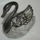 Swan Figure Salt Cellars or Open Salt Glass with Silver Wings Signed Italy
