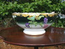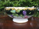 HERE IS A GORGEOUS FACTORY DECORATED T & V LIMOGES HAND PAINTED PUNCHBOWL IN GREAT CONDITION FROM THE TURN OF THE CENTURY. IT FEATURES BEAUTIFULLY PAINTED PINK, LAVENDER AND WHITE CARNATIONS INSIDE AND OUT. THE EXTERIOR IS PAINTED IN A SHINY DARK GREEN HUE AND THERE IS LAVISH GOLD GILDING AS CAN BE SEEN IN THE IMAGES. IT IS IN VERY GOOD CONDITION WITH ONLY A VERY MINIMAL GOLDWEAR AND TWO TINY SPOTS OF DARK PAINT MISSING AS CAN BE SEEN IN THE IMAGES. NO CHIPS CRACKS OR HAIRLINES. IT MEASURES 14" IN DIAMETER AT THE TOP AND IS 6.5" TALL. (T&V) TRESSEMANN & VOGT MARK 5a IN GREEN UNDERGLAZE AND DECORATING MARK 11 IN RED OVERGLAZE. BOTH MARKS DATE THIS WORK TO 1892-1907.