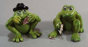 Two frogs playing cards. Cute little gag gift, they are two plastic frogs with paper cards and the one has a card stuck under her foot. Excellent condition, Aprox a 1 1/2 x 1 1/2"". Shipping is 1.00 if in the USA