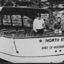 Real Photo Postcard of North Star, Port of Wisconsin Dells, Wisconsin. Back is unused but does have writing Your Guide. Postcard is in good condition, wear at edges, light stain at top edge.