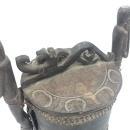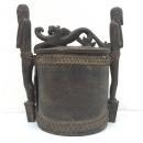 An antique Lupong container from the Iban people of Sarawak Borneo, the body made of natural tree bark/skin whereas the two Guardian Poles are carved from Belian / Ironwood. More beautiful in real life, a must have for serious collectors! Circa 1940, good condition.