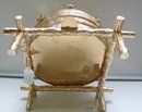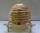 Beautiful Rare Gilded Silver Plated Beehive shaped Biscuit Box in excellent condition. It measures 91/2" x 9 1/2" at the base. The circumference is 23" and it is 9 1/2" high.
