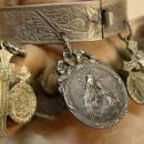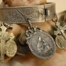 Victorian Religious Charm Bracelet bangle french Ave Maria sacred heart medals