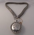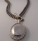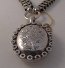 Lovely Victorian Sterling Collar with locket. It is in very good condition. The locket measures 2" long including the bale x 1 1/4" wide. The collar is 15" long and almost 1/2 " wide.