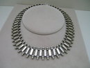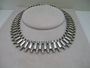 Victorian sterling silver collar in excellent condition. It measures 18" from end to end including the spring ring and it is almost 1" wide. The individual rectangular pieces rotate: one side is plain and the other is etched. The necklace can be worn with the plain side or the etched side or a combination of the two. Perfectly and beautifully Victorian