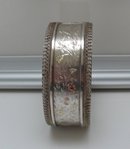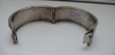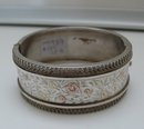 Beautiful floral Victorian Sterling Silver Bangle with rose gold overlay. It measures 1" wide and the inner diameter is 2 1/8" x 1 7/8". It weighs 35 grams.