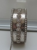 Beautiful l Victorian Sterling Silver Bangle in very good condition. It measures 1" wide and the inner diameter is 2 " x 2 1/4". It weighs 30 grams.