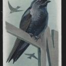 Victorian Trade Card for Arm and Hammer and Cow Brand, Baking Soda. Useful Birds of America Ninth Series. The Purple Martin #14. Front of Card show the Bird and back of card has information about the series, Arm and Hammer and Cow Brand Baking Soda and about the Bird. Card is 3" high and 2" across. Good condition, wear at edges.