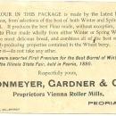 Victorian Trade Card for Vienna Roller Mills Flour, Peoria, Illinois. On the Front of the card is a Snowy Landscape with Three Birds. Back of card is has information about the Flour. Card is in good condition, slight wear at edges, crease at top edge. Card is 2 1/2" high and 3 3/4" across.