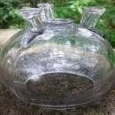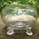 Clear glass flower bowl made by Viking in the 1950s-70s. Known as the Flora-lite Bowl #1007. Stands 3 3/8"h x 4 1/2"d. Rests on 3 feet. Very good condition with no chips or cracks. Excuse the water drops in photo #3. Inglenook Antiques...Established 1989.